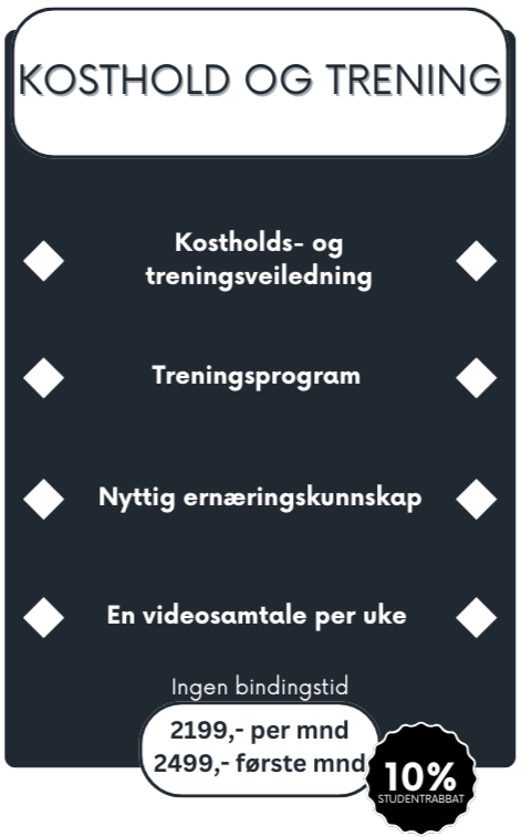 Jeg er 24 år gammel, født og oppvokst i Levanger, og per dags dato bor jeg i Oslo mens jeg studerer ernæring. Tidligere har jeg jobbet fysisk som PT hos 3T i Trondheim. Personlig har jeg gått ned 50kg. I tillegg til dette har jeg også hold et par seminarer om ernæring og livsstilsendring.
